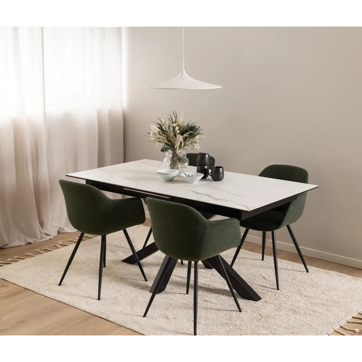 Der Heaven Esstisch überzeugt durch sein elegantes Design mit weißer, keramischer Tischplatte und funktionalem Synchronauszug – perfekt für moderne Wohn- und Essbereiche.