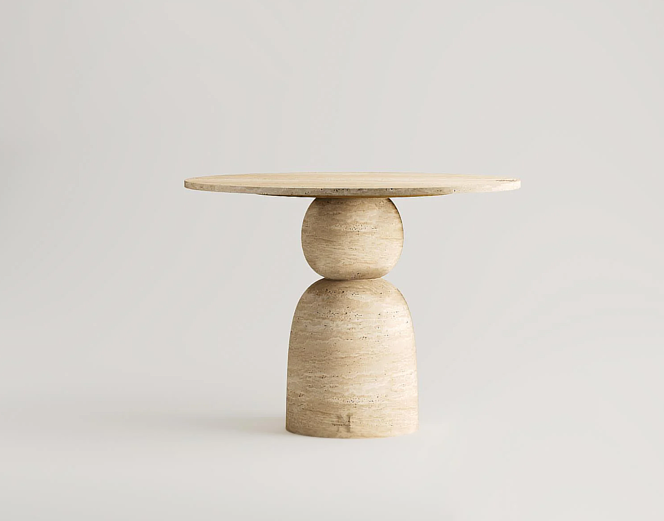 Gefertigt aus echtem Travertin – mit natürlicher Maserung, warmen Farbnuancen und feinen Poren. Jede Tischplatte ist ein Unikat und spiegelt die Schönheit des Natursteins wider.