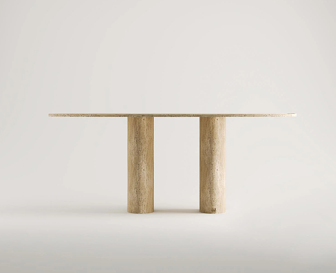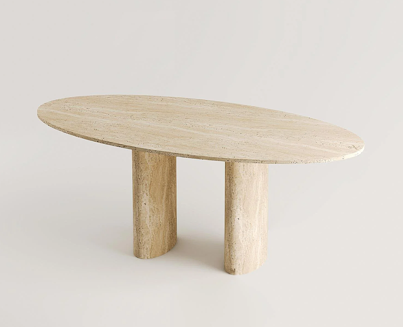 Der Daniela Esstisch überzeugt mit einer ovalen Tischplatte aus Travertin und einem zeitlosen Design. Die sanft geschwungene Form bringt Harmonie in den Raum und verleiht dem Essbereich eine natürliche Eleganz.