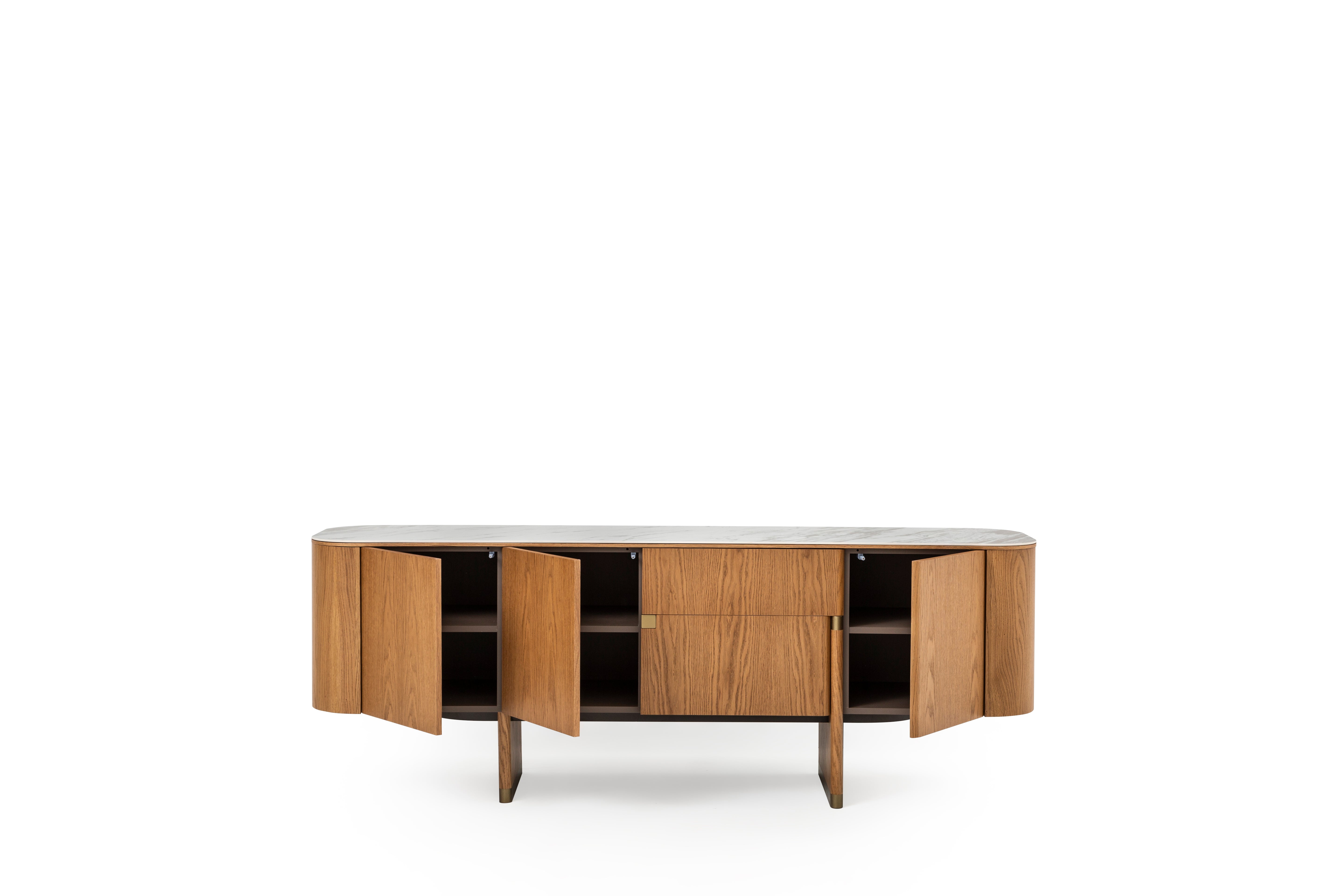 Die Delta Kommode mit Porzellan bietet nicht nur umfangreichen Stauraum, sondern auch eine exquisite Verarbeitung, die jedes Interieur aufwertet. Mit Maßen von Breite: 220 cm, Tiefe: 150 cm und Höhe: 79,5 cm, kombiniert diese Version der Kommode funktionalen Nutzen mit ästhetischer Pracht. Die eingearbeiteten Porzellanelemente verleihen eine besonders edle Note. Wählen Sie aus Farbkombinationen wie Light Gray-Black oder Anthracite Oak-Silver, um Ihre Einrichtung stilvoll zu ergänzen. Diese Kommode eignet sich hervorragend für anspruchsvolle Räumlichkeiten, wo sie sowohl als praktisches als auch dekoratives Möbelstück dient.