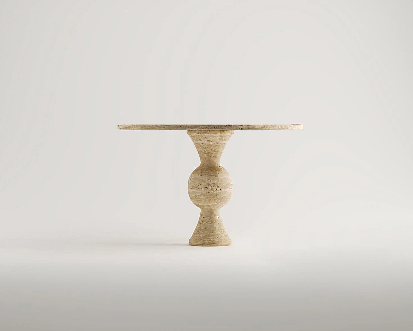 Jackson Travertin Esstisch Rund mit Sanduhrfuß