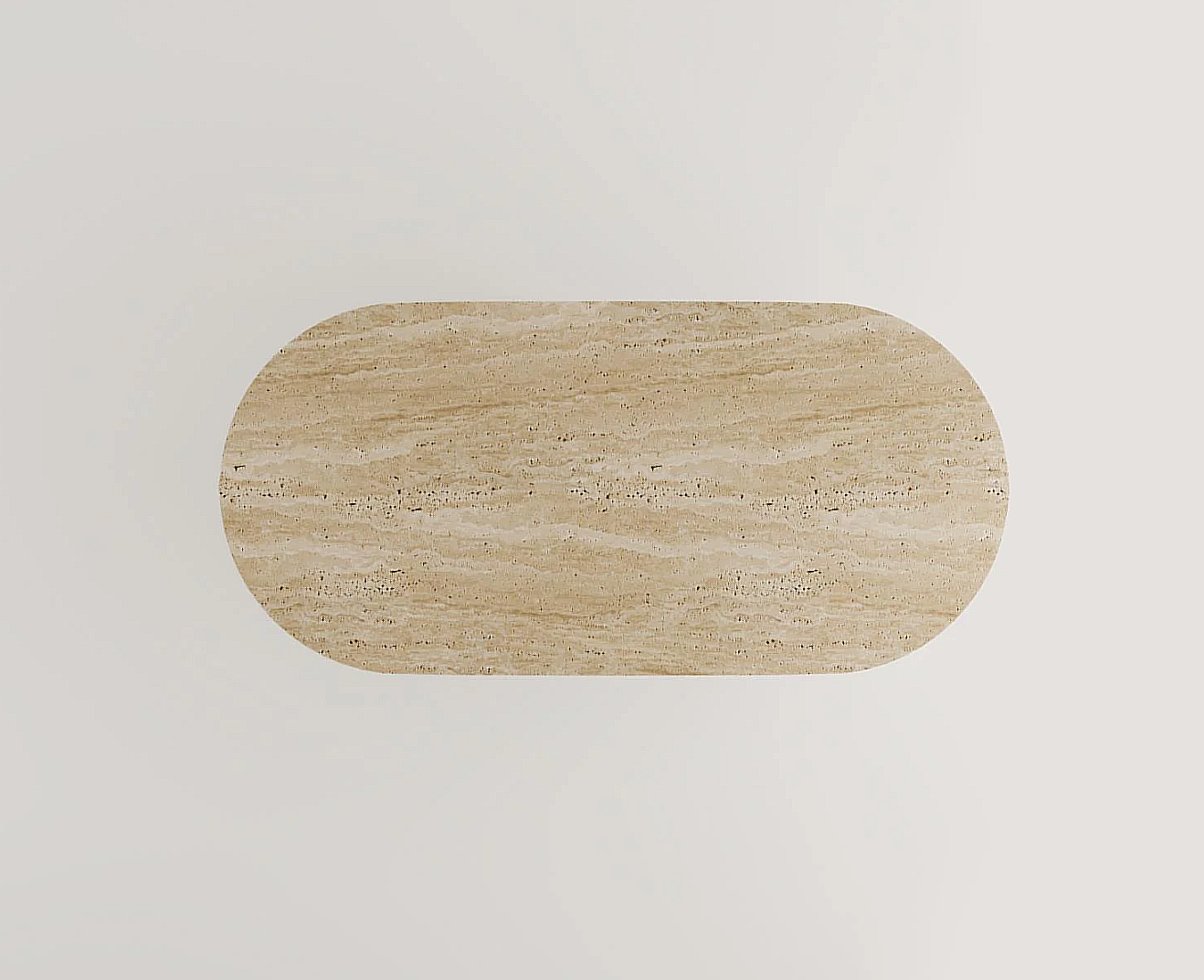 Da Travertin ein Naturmaterial ist, variieren Struktur, Farbton und Maserung bei jedem Tisch. Diese natürlichen Unterschiede sind Qualitätsmerkmale und machen jedes Exemplar zu einem unverwechselbaren Unikat. Bitte berücksichtigen Sie dies bei der Bestellung.
