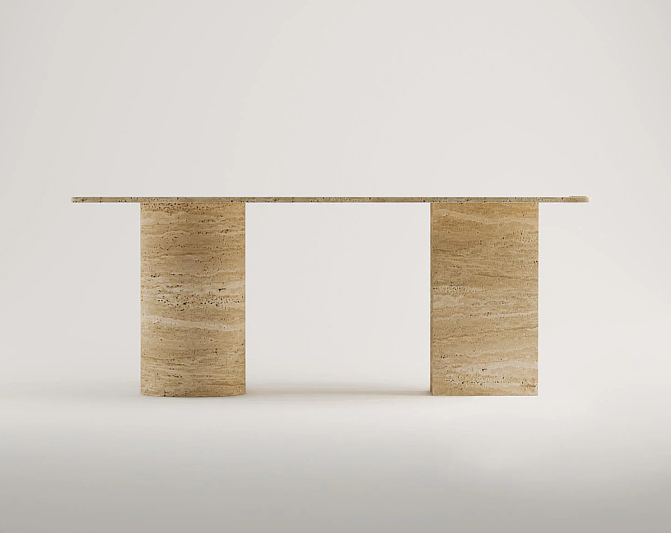 Ein eleganter Esstisch aus natürlichem Travertin, der mit seiner rechteckigen Form und der klaren Linienführung zeitlose Raffinesse in Ihren Essbereich bringt. Jedes Stück ist ein Unikat durch die individuelle Struktur und Farbgebung des Steins.