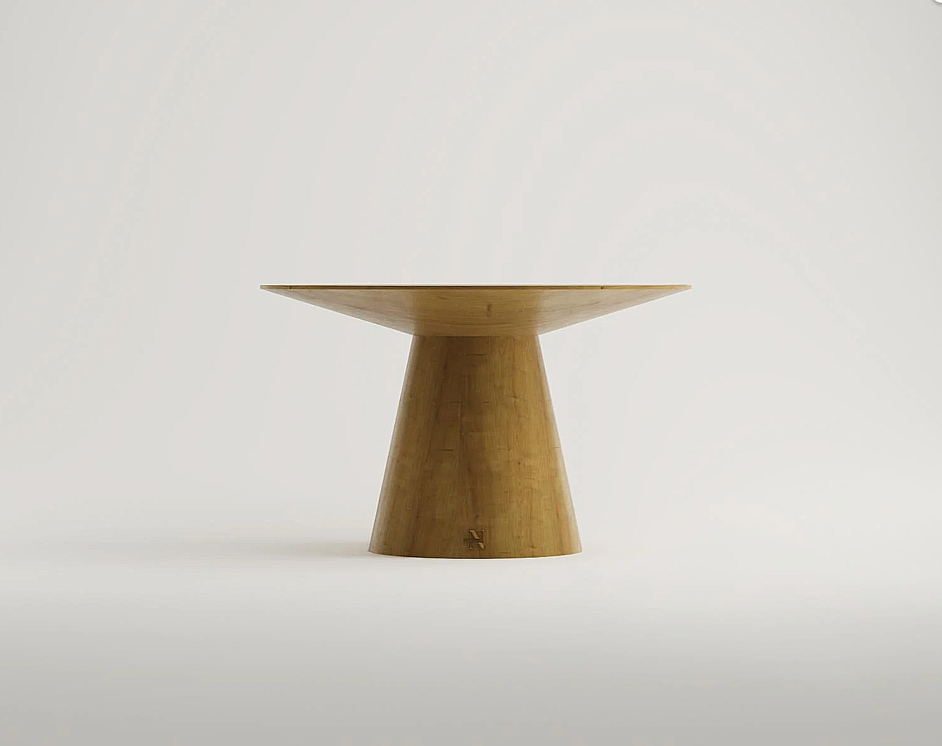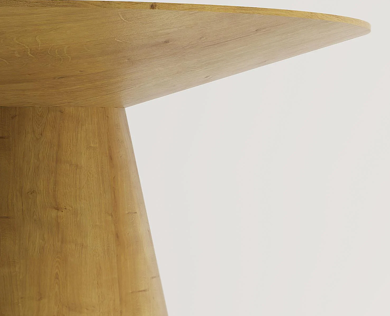 Ein runder Esstisch mit kraftvoller Ausstrahlung und natürlicher Eleganz. Die massive Tischplatte sorgt für Stabilität und verleiht dem Design eine markante Präsenz.